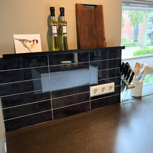 De grijze kleur is stijlvol en veelzijdig: van moderne keuken tot rustig toilet – deze tint voelt zich overal thuis. De tegels zijn dun maar stevig, goed bestand tegen vocht en makkelijk schoon te maken met een doekje. Zo geef je je wand in één middag een frisse, verzorgde look. Geen breekwerk, wél een groots effect.