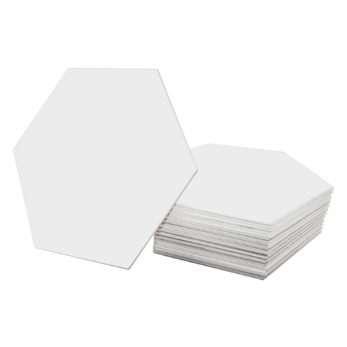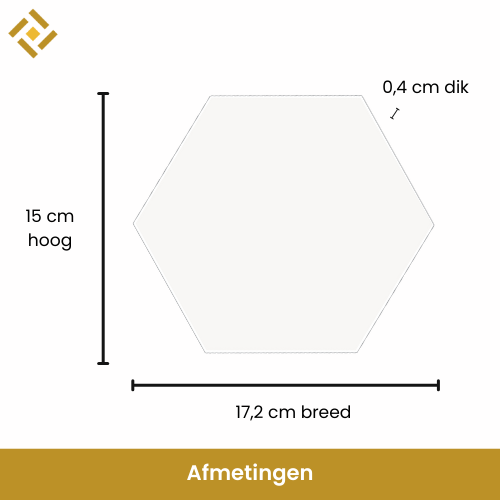 Deze witte hexagon wandtegel is gemaakt van hoogwaardige PVC-kwaliteit en heeft dezelfde afmetingen als de andere varianten: 15 cm hoog, 17,2 cm breed en 0,4 cm dik. Door het slanke profiel ogen de tegels strak op de wand, zonder te overheersen.