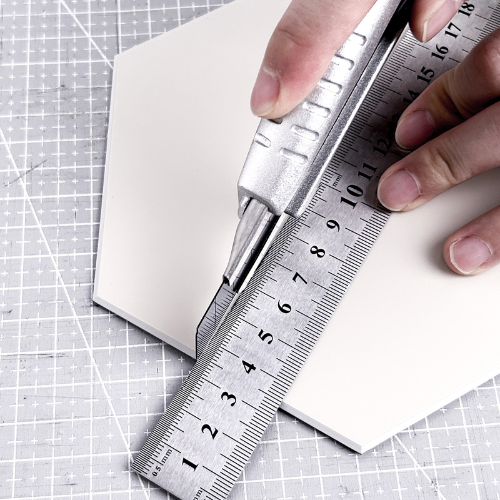 De uiteinden van de wanden zal je waarschijnlijk moeten opvullen met op maat gemaakte plaktegels. Het komt namelijk zelden voor dat je alles met hele tegels kan opvullen. Meet dus goed op welke maat je de plaktegels moet afsnijden en teken dit uit op de achterzijde van de plaktegels. Vervolgens kan je met een scherpe stanleymes de plaktegels op maat maken. Plak deze vervolgens op de uiteinden totdat je de wand volledig gevuld hebt met plaktegels.