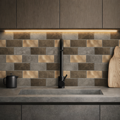 - Keuken: Creëer een stijlvolle en onderhoudsvriendelijke achterwand achter het fornuis of aanrecht. De bronzen tegels zijn hitte- en vochtbestendig en geven je keuken direct een luxe uitstraling.