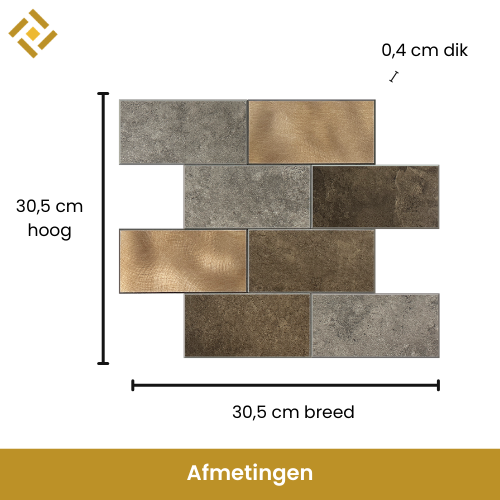 - Eenvoudig te plaatsen: Dankzij de zelfklevende achterkant breng je de bronskleurige tegels snel aan zonder lijm of speciaal gereedschap.